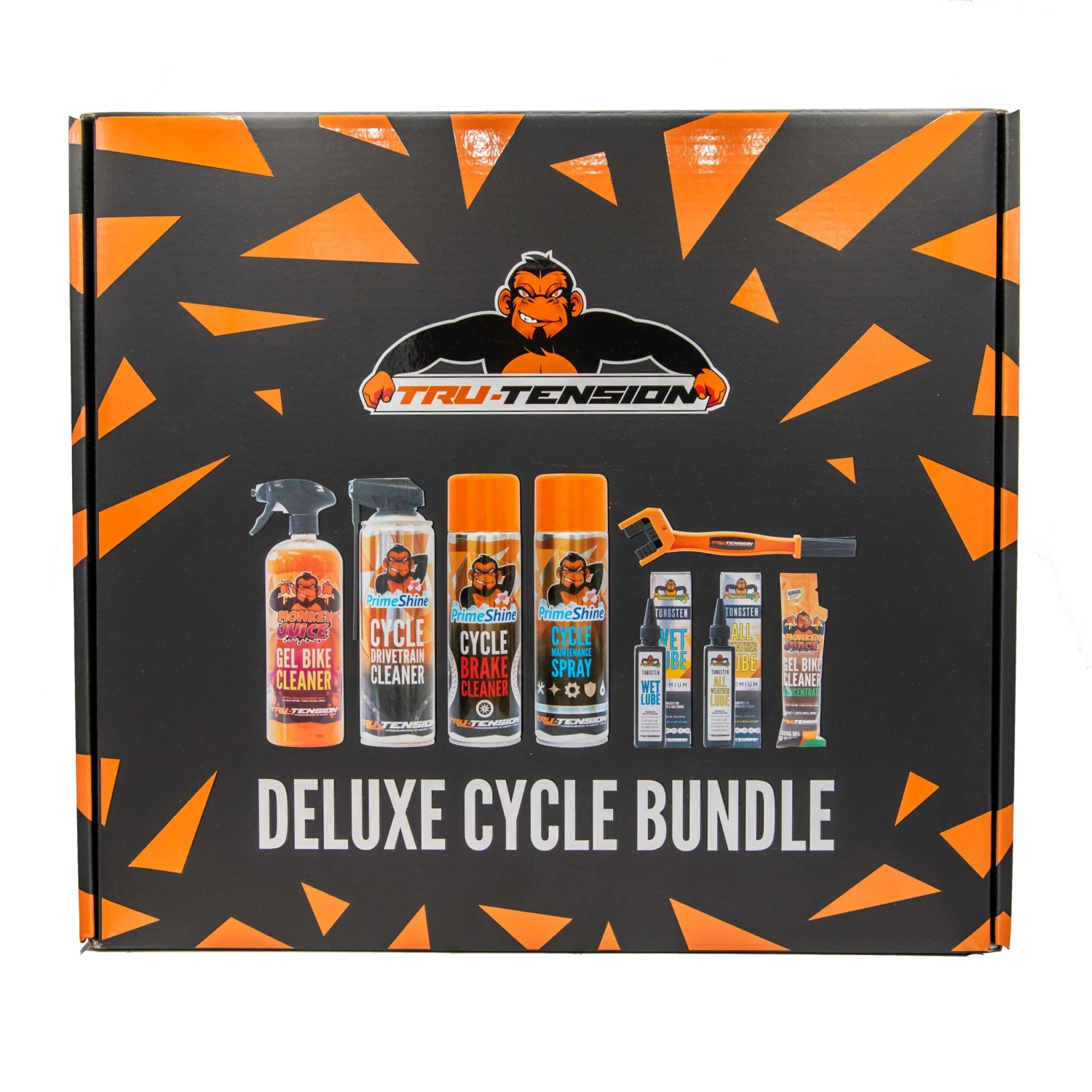 Enhance any riders toolbox with this 8 piece Tru-Tension Deluxe Cycle Bundle of cycling tools, superior cleaning products and innovative lubricants from Tru-Tension. The perfect bundle for complete bike maintenance and protection.