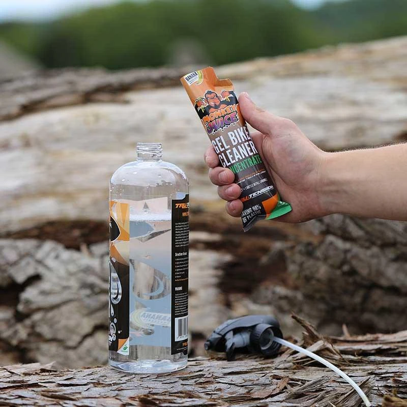 Monkey Juice Gel Bike Cleaner is a specifically formulated degreaser designed to instantly lift and remove stubborn dirt and grime generated from riding. Unlike all other cleaners, Monkey Juice sticks to the surface of the bike rather than dripping off, providing a superior clean and helping to repel future dirt. Safe to use on all bike components.