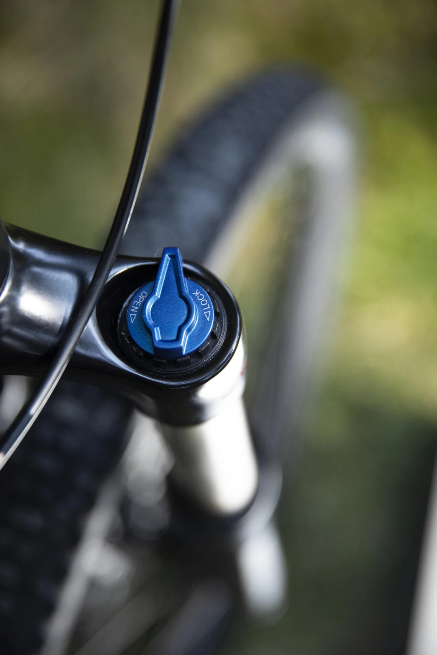Keeping the Nzumbi firmly planted, the bike’s equipped with high-volume, performance tyres that provide plenty of grip. This grip is enhanced by a Suntour suspension fork which also has a lock-out that disables the suspension for easier pedalling when riding on the flat or uphill.