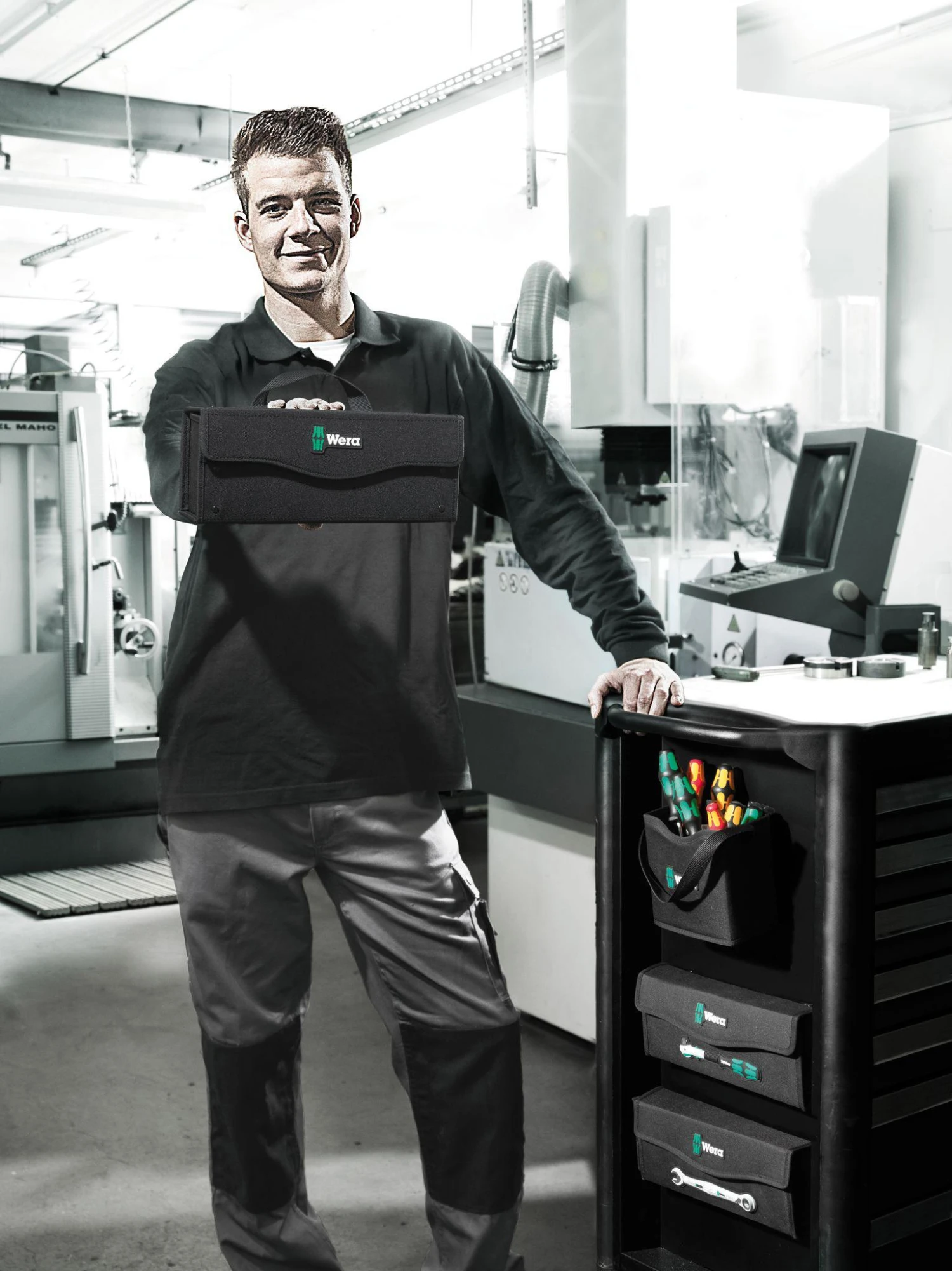 The Wera 2go 4 Tool Quiver is construted in a robust and dimensionally stable material that is very resistant against damage cuts and stabs. The tools carried are protected against damage and moisture. This enhances the service life of the tool box.