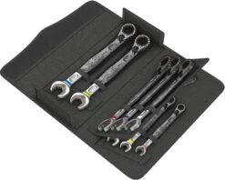 The special forged geometry allows for high torque transfer and high flexural rigidity. Manufactured out of high-performance chrome-molybdenum steel with a nickel-chromium coating for high corrosion protection. This set also features Wera's take it easy tool finder: colour coding according to size.