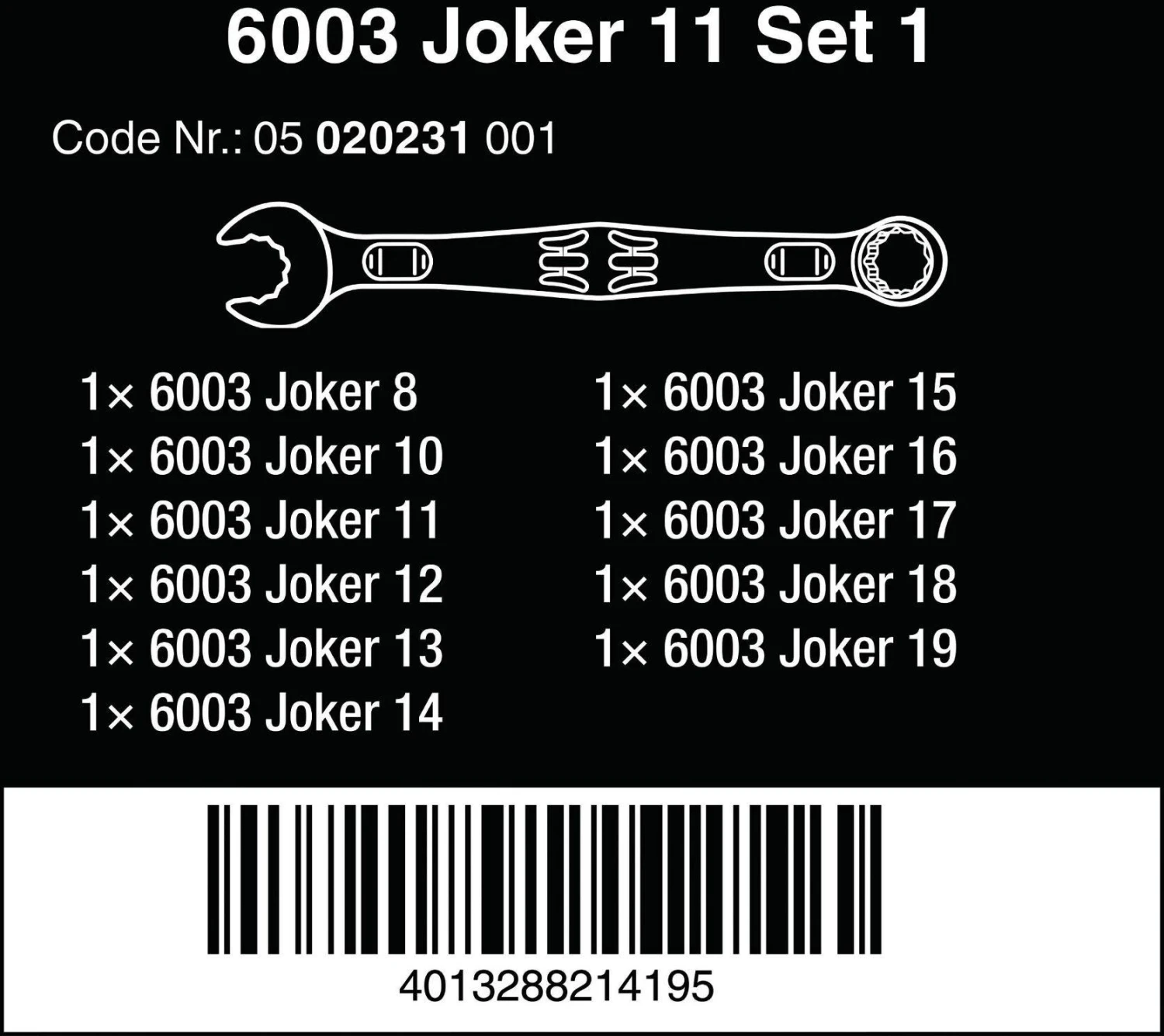 Wera 6003 Joker Set 1 Combination Wrench Set 11pc