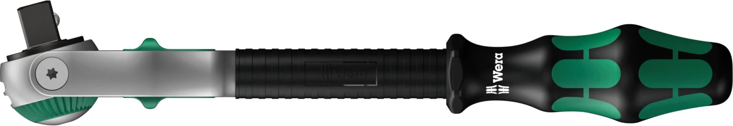The predefined locking positions at 0°, 15° und 90°, both to the right and left, ensure safe working without any slipping of the ratchet head. The ratchet can be used as a conventional screwdriver in the 0° position by attaching an adaptor and a bit. The flywheel design ensures rapid screwdriving.