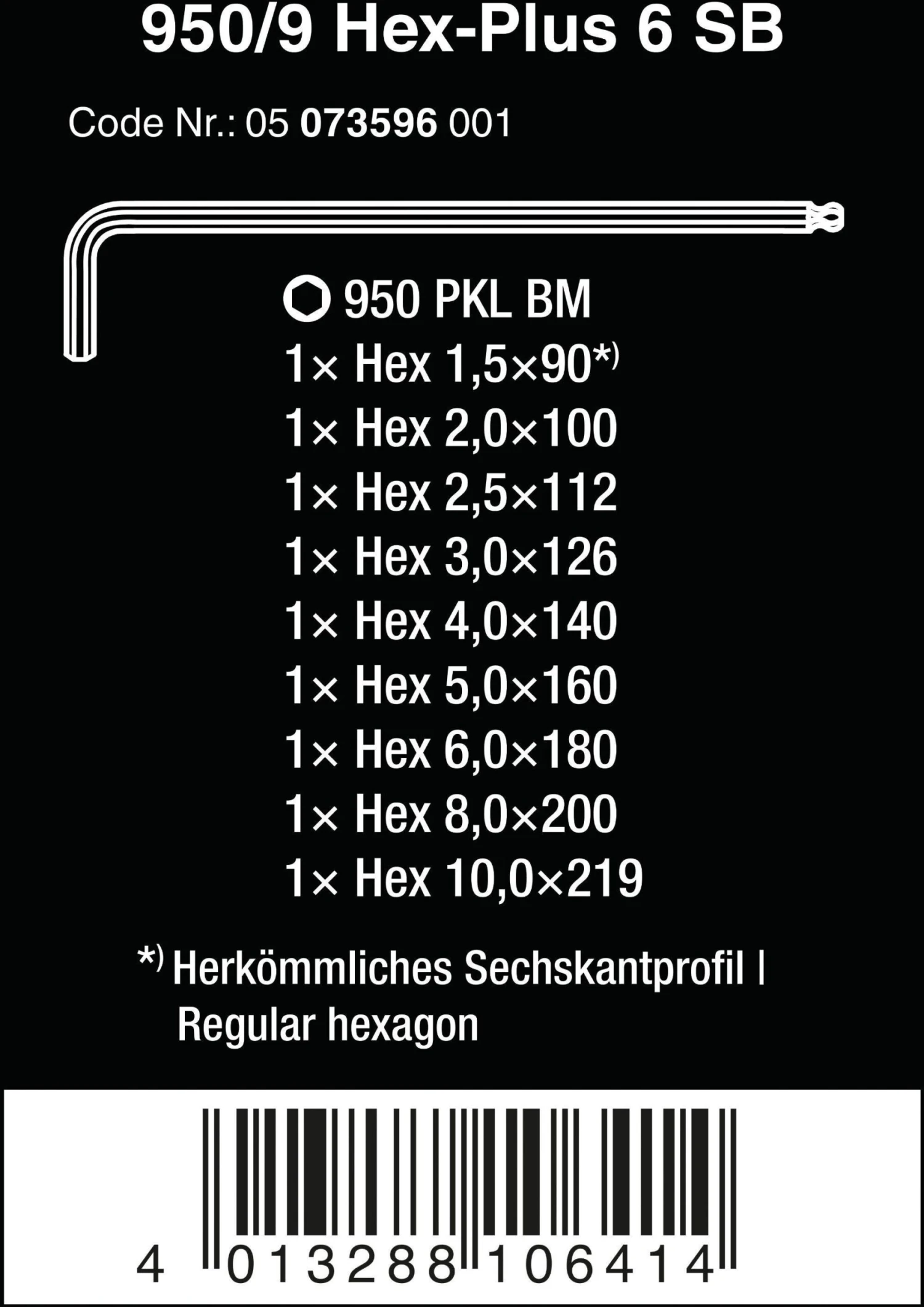 Wera 950/9 Hex-Plus 6 SB L-key Set BlackLaser