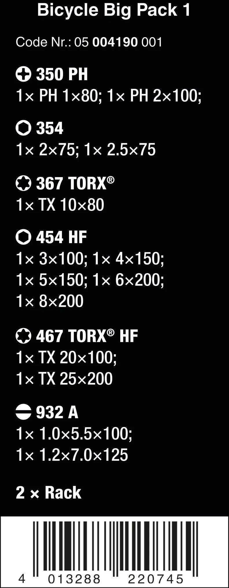 Wera Bicycle Big Pack 1 – T-Handle Hex/ Torx Key, Kraftform Screwdriver & Chiseldriver Set 14pcs