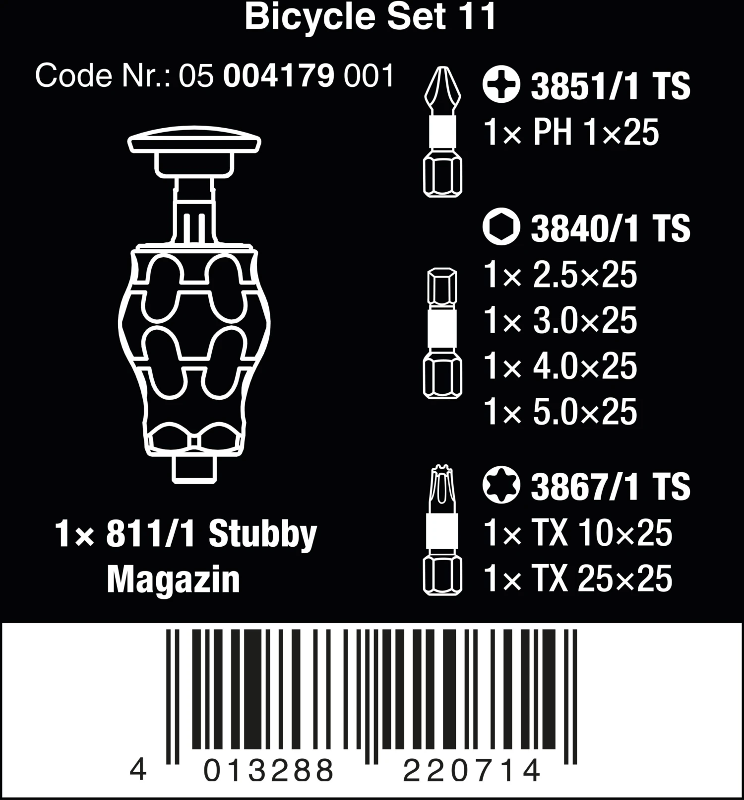 Wera Bicycle Set 11 Kraftform Kompakt Stubby Screwdriver & Bits Set 7pcs
