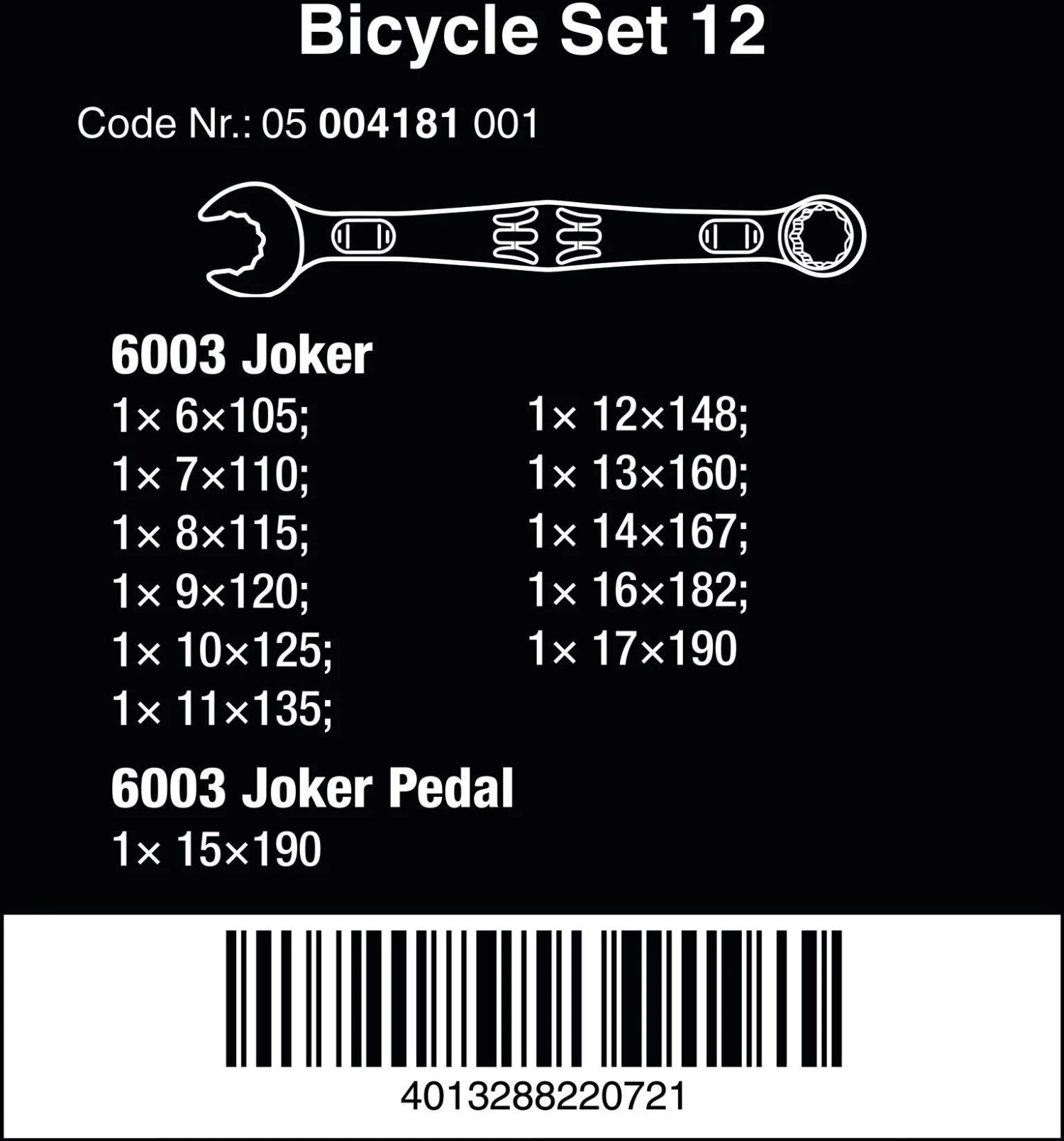 Wera Bicycle Set 12 Joker Wrench Spanner Set 12pcs