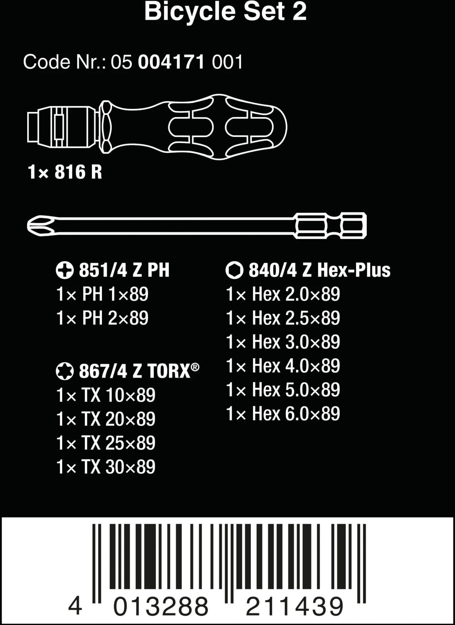 Wera Bicycle Set 2 Kraftform Compact Screwdriver 89mm Bit Pouch Set 13pcs