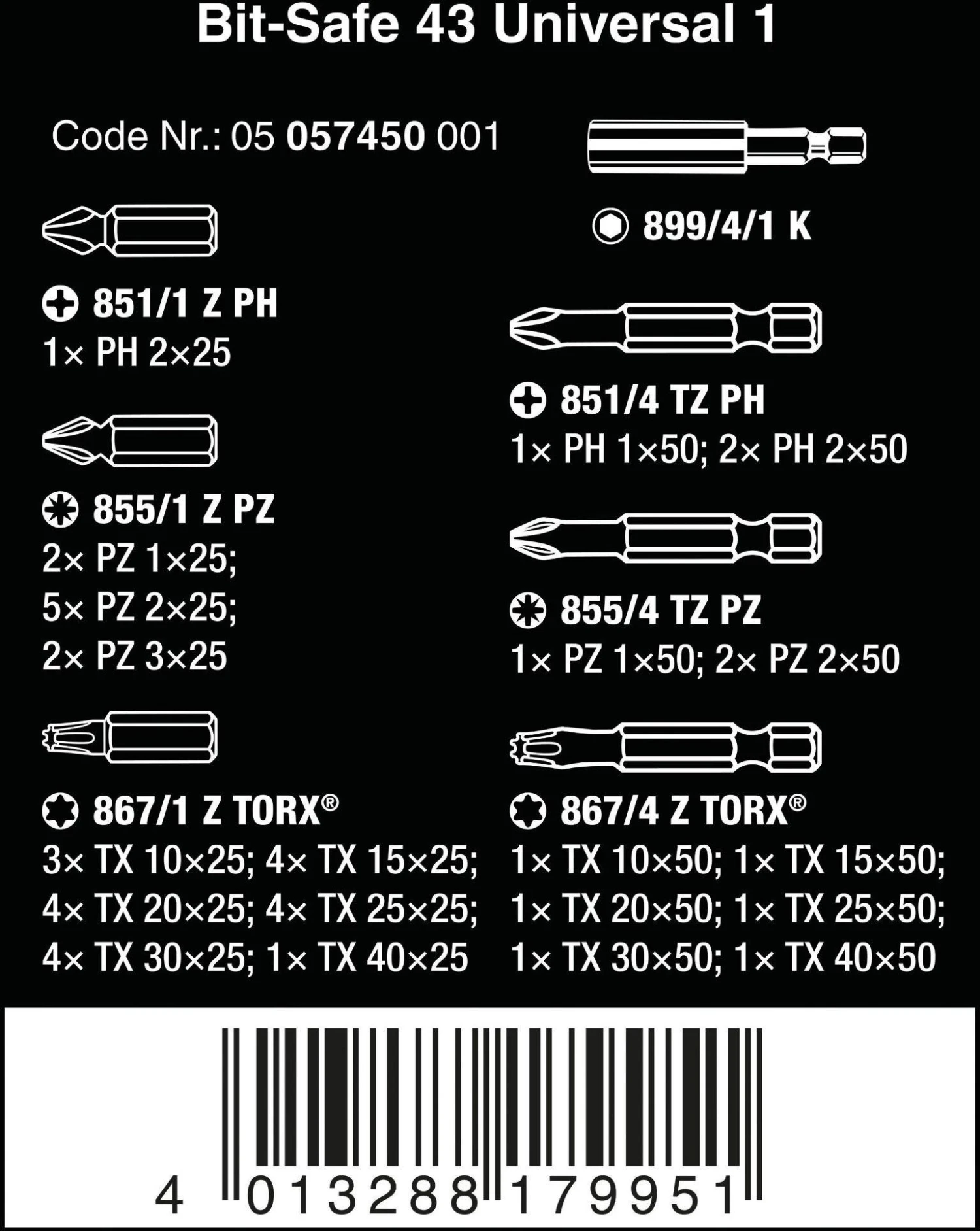 Wera Bit-Safe 43 Universal 1 Drill Bit Set 43 pcs