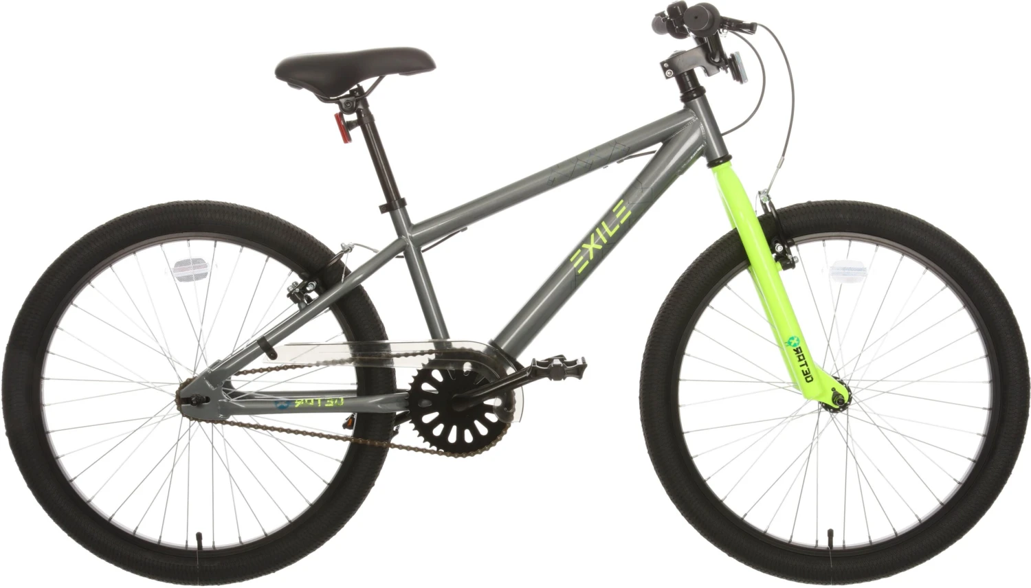 The X-Rated Exile BMX Bike – 24″ Wheel is perfect for adventurous kids aged 8 and over. It’s fully jump capable with a 13″ hi-tensile strudy steel frame. Powerful V-brakes and strong alloy double wall rims add to this dirt jump style bike’s list of credentials, and the acid green colour is bound to turn some heads at the skatepark!