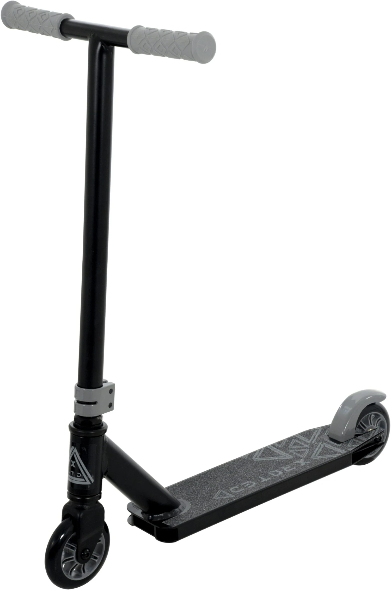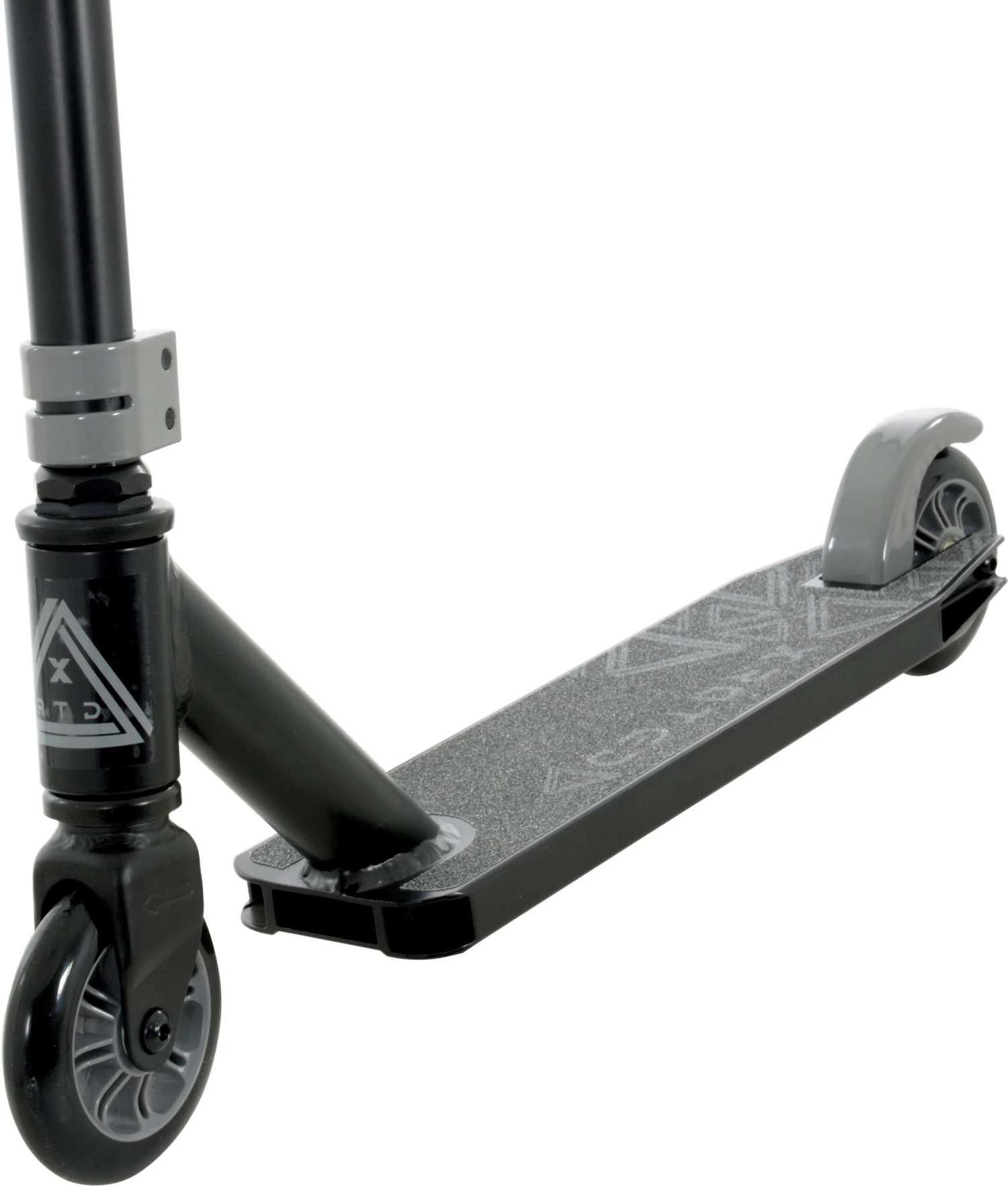 The X-Rated Stunt Scooter is ideal for beginners looking to enter the world of stunt scootering The scooter features a small stunt style 3.5″ wide deck, and the basic plastic core 100mm wheels with ABEC 5 bearings give you an entry level ride. The threaded headset will keep the scooter stable as you ride, and the low and narrow T shape handlebars give you good control over the scooter. The X-Rated Stunt Scooter also features a spring brake for reliable braking power.