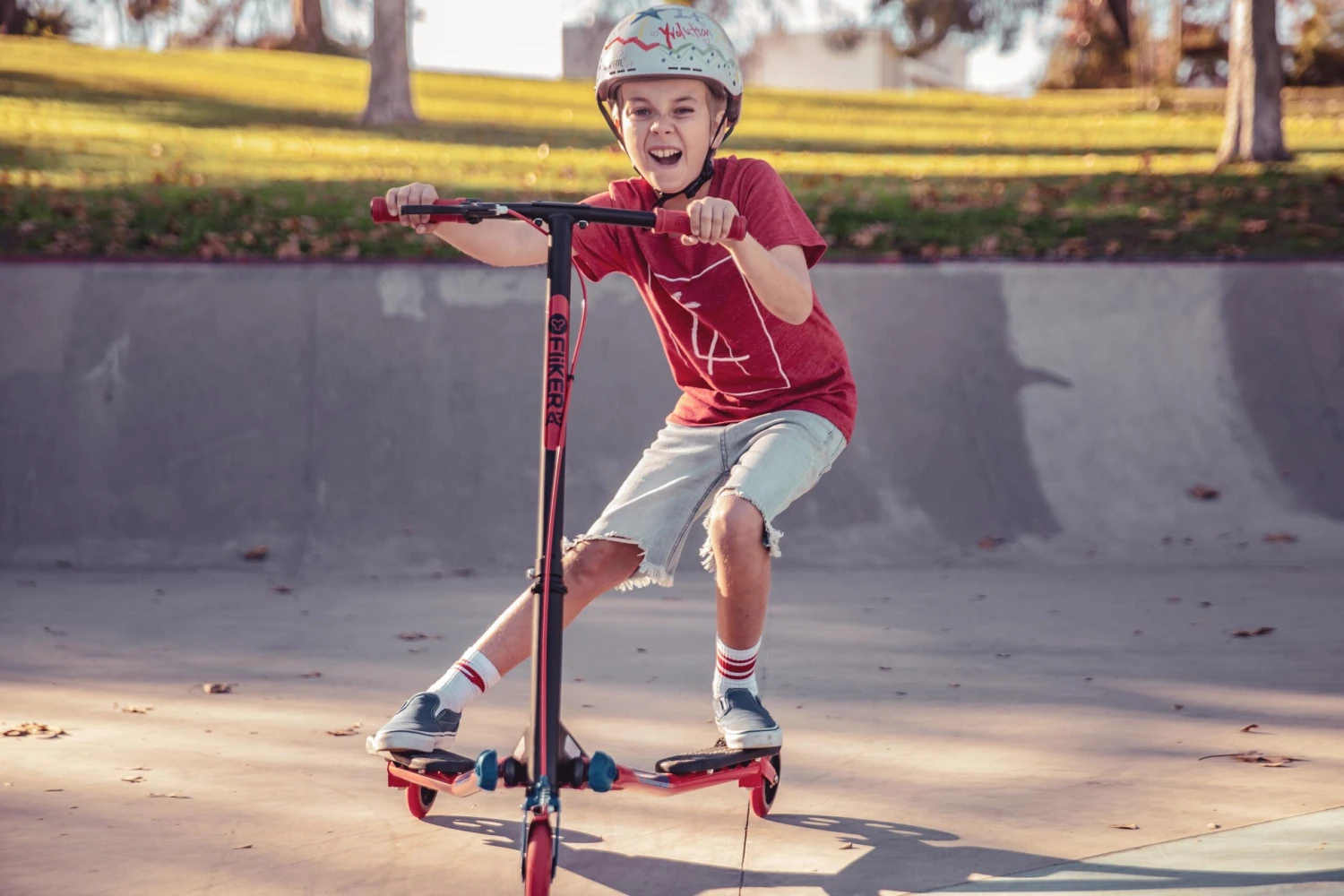 Y Fliker A3 is a super fun ride that’s easy to control. The smooth-rolling PU caster wheels and a folding mechanism allows parents to fold down the scooter in seconds – ideal for carrying the Fliker back from the school gates, decluttering the hallway at home, and makes it super easy to take home with you.